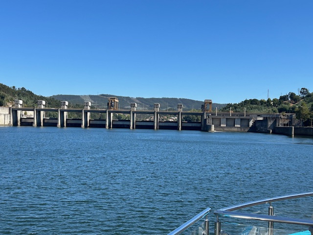 The next day we departed for Vego Terron at 06.45 hrs. and at 07.30 we entered our third upstream river Bagauste Lock, a high lift of 28m/84 ft. Guillotine shape gate! This is the third lock of five on the Douro. Amazing engineering. It is as impressive as the other dams (not the highest this time). If you appreciate Waterwork engineering, you will love this trip. When on a River Cruise, there is only space for the one boat in the lock. Watch out for the free shower on the top deck!!